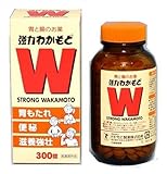 「強力わかもと300錠」は、消化・整調・栄養補給の3つの働きを持った胃腸薬です。アスペルギス・オリゼーNK菌培養末が弱った胃腸の消化を助け、胃のもたれや食欲不振などに効果があります。乳酸菌培養末が、腸内の有害菌を抑えて、おなかの調子を整え、おなかの張りに効果があります。また、便通を促し、便を柔らかくすることにより、便秘にも効果があります。2種類の培養末と酵母に含まれているビタミンB群をはじめとする豊富な栄養素が、滋養強壮、肉体疲労時の栄養補給などに役立ちます。天然物を主原料としており、お子様からお年寄りの方まで幅広い年齢層の方に服用していただけます。300錠入り。医薬部外品。