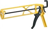 【用途】軽量コーキングガン。【特徴・機能】エンジニアリング・プラスチックを採用した超軽量(340g)、コンパクトボディです。ホルダーにXホールド形状を採用、ロット棒を引いてもコーキング材が落ちません。コーキング材がセットしやすいガイド付きです。建材などにキズをつけにくい、樹脂カバー処理をしたロット棒エンドカバー採用しています。液だれ防止機構を搭載しています。