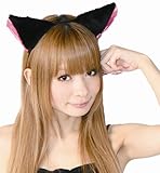 フワフワ猫耳カチューシャ 前耳 黒/ピンク