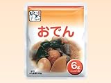 かつおと昆布の風味豊かなおでんです。大根、うずら卵、いか団子、こんにゃく、がんもどきの6種類の具材が楽しめます。