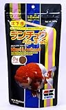 天然飼料が不可欠とされていたらんちゅうやオランダシシガシラや東錦などの肉りゅうの発育促進と、室内金魚の退色防止及び色揚げのために開発された高度な特殊効果飼料です。特殊原料の効果で、天然飼料に負けないすばらしい肉りゅうが発達します。口が下向きのランチュウに合わせた柔らかい沈下性です。良質蛋白に各種栄養素をバランス良く添加しているので、成長が早く、素晴らしい金魚に育ちます。