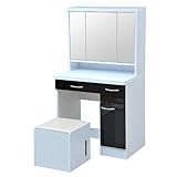ホワイトとブラックのモノトーンでクールなお部屋に仕上げるスタイリッシュシリーズ。ミラーの中もたっぷり収納でき、また少し開いた状態で使用すると三面鏡の役目も果たすドレッサーです。メイク時に欠かせないティッシュボックスもスツールの中に収納できとっても便利です。