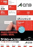 エーワン(A-one) ラベルシール[プリンタ兼用] マット紙・ホワイト A4 44面 四辺余白付 22シート(968片) 72244