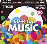太陽誘電製 That's CD-R音楽用 24倍速80分 ワイドプリンタブル インデックスカード付 5mmPケース10枚入 CDRA80WWY10ST