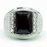 大粒ブラックストーン調/プラチナシルバーRG加工リング/指輪[R160/17~25号]