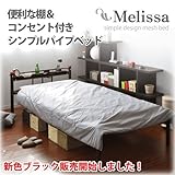 ネット通販限定特価で家具が激安!便利な棚&コンセント付き シンプルパイプベッド(ブラック)