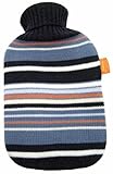 fashy デラックス湯たんぽ ストライプニット 2.0L ネイビー 【フリースイエロー洗替カバー付】 O33646