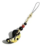 魔除けのオニキスと日本に古来から伝わる勾玉、さらには龍と、縁起の良いものをふんだんに取り入れたストラップに仕上がっています。
