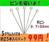 【アクセサリーパーツ・金具】 9ピン 0.7×50mm 銀色・ロジウムカラー 5g入り(約25本)が99円のサービスパック!