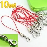 ナスカン付きストラップパーツ(紐/レッド:ナスカン/銀)OPP入10個セット
