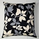 チャコールグレイベース/リーフブラック地●座布団カバー55cmX59cm銘仙判