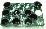 3寸用の18穴トレー でサイズは縦34.2 横50.7 高さ7.4cmです。写真の右下から半透明ポリポット9cm、スリット鉢9cm、硬質ポリポットの9cm、KU-30、G-33,A-30、U-33、富貴蘭プラ鉢3.5号、Q-303、富貴蘭プラ鉢4.0号(少し浮きます)、U-33、運搬、棚の管理などに便利です。