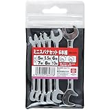 ミニスパナセットの6本組セット。【特長】・六角ボルト・ナットの締付け、緩め作業に。・差込方向が選べる特殊形状。・セット内容:5・5.5・6・7・8・10mm。