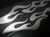 シンプルなフレイム(炎)パターンのステッカー・左右セットです。素材は屋外での耐用年数が5年の鏡面ミラーシートを使用しております。塩ビ素材で伸びが良く、ヘルメットのような曲面にも貼る事が可能です。サイズは左右合わせて13cm×28cmとなります。