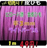 THE切売り!皮ひもシリーズ 1m単位でお切りします! 合皮ビロード調平皮ひも ライトパープル 幅3mm厚さ1.2mm