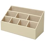 ●3サイズの仕切りで、リモコンや携帯電話、眼鏡、ペンやハサミ等の文房具などのテーブル周りの小物と一緒に新聞や雑誌までをまとめて収納できる