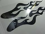 シンプルなフレイム(炎)パターンのステッカー・左右セットです。素材は屋外での耐用年数が5年の鏡面ミラーシートを使用しております。塩ビ素材で伸びが良く、ヘルメットのような曲面にも貼る事が可能です。サイズは左右合わせて13cm×28cmとなります。クロームはシルバーより暗い色となります。