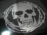 ドクロ全体に有刺鉄線を張り巡らせたデザインとなります。貼る部分の色を問わないステッカーです。素材は屋外での耐用年数が5年の鏡面ミラーシートを使用しております。塩ビ素材で伸びが良く、ヘルメットのような曲面にも貼る事が可能です。カラーは写真のシルバーミラーを含め全6色用意しております。クロームミラーは暗めのシルバーです。サイズは10cm×10cm と 15cm×15cm となります。
