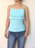 ブラなしで1枚で着られるカップ付きのアウター・キャミソール♪夏らしいオレンジとサックスの2色☆かぶせ布と裾の処理はひらひら波打つメロウ始末にして、見た目もおしゃれに・・・生地は、伸縮性のあるフライス綿。苦しい締めつけ感がまったくなく身体に気持ちよくフィットします!