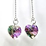 揺れるたびに異なる色が現れる神秘的な色のハート型スワロフスキーのピアス!
