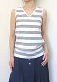 カジュアル授乳服Baby-Zoo ノースリーブTシャツ(Vネック) グレーボーダーM