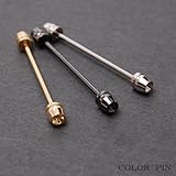 ゴールド、シルバー、ブラックの金属カラーの3色から選べるピンホールシャツ専用のカラーバーです。キャッチのデザインがかっこいいです。ナロータイにも対応したショートサイズです。片方のみキャッチが回るようになっております(一部両方回る場合もございます)。キャッチ含めた全長47mm キャッチを付けた状態でキャッチを含まないピンの全長35mm。※ピンに傷が入っている場合がございますので、予めご了承下さい。