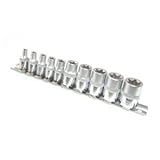 10個セットのE型ヘックスローブソケットセットです。 材質:クロムバナデューム合金 ≪サイズ≫ 1/4(6.3mm) E4、E5、E6、E7、E8 3/8(9.5mm) E10、E12、E14、E16、E18