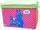 ドット柄の中に、のほほんとしたロディのアップリケがインパクト大!こまごましたおもちゃや小物を整理整頓できる収納ボックス。市販のカラーボックスにぴったり入るサイズです。別売りのハーフ収納ボックスは2つでちょうどカラーボックスの幅にぴったりなので、合わせてお使いいただくと可愛らしさ倍増。折りたためば平らになります。両サイドには移動に便利な持ち手付。バッグやポーチもオススメ!横38×縦27×奥行27cm、素材:ポリエステル・紙(中芯)・合金・アクリル。中国製