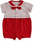 Petit Nous(プチヌー) セーラー風の衿とタイがかわいいマリン風ボーダー半袖コンビ 70cm レッド 233303