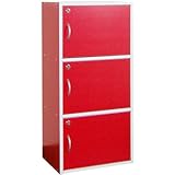 シンプル3段(レッド) 鍵付き扉収納 キーボックス 23702