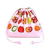 ごきげんランチの巾着(中サイズ)・マチ付お弁当袋 おしゃれリンゴのひみつ(ピンク) × オックス・ピンク 日本製 N3461400