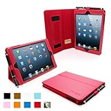 Snugg社 iPad Miniレザー ケースカバー・フリップスタンド - 伸縮性ストラップ付き、内部は最高級ヌバックファイバー(レッド) - iPad Miniが自動的に立ち上がり、休眠状態に。あのベストセラーiPad 2&3ケース の米国Snugg社より。
