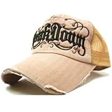 フロントにグラフィックデザインのようなOldEnglish字体刺繍で独特なカッコ良さを強調。字体からの広がりをビョウスタッズが加わり抑えたことでさらにCOOLなデザインに!つばにはダメージが施しているのでカジュアルさもプラス!かぶり部分はメッシュになっているからこれからのシーズンでも快適に使用できます!!またつば長の約8.5cmサイズで小顔効果にも最適?!※5/21再入荷分よりつばのデザインが変更になりました。※同じ生地を使用しておりますがダメージ具合が多少、画像と異なる場合がございます。予めご了承下さいませ。 ■サイズ:約55.0~59.0cm/ツバ約8.5cm/額の高さ約8.5cm ■素材:綿100%/(メッシュ部分)ナイロン100%
