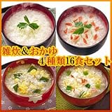 ■セット内容:かに雑炊21.5gX4/しらす雑炊17gX4/白かゆ16gX4/紅鮭みつ葉おかゆ18gX4。合計:4種類16食