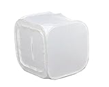 コンパクトに折りたたまれたフォトスタジオを広げると、あっという間に簡易スタジオのできあがり!フォトスタジオ内にセットされた被写体は、全面をディフューザー(光を柔らかくするための布や紙など)で覆われた状態と同じになり、柔らかい光がまんべんなく行き届くので、ソフトで美しい写真を撮影することができます。また、鏡面仕上げの映り込みが激しい物も、フォトスタジオで全面を覆えば、余計な映りこみもなく、すっきりした写真を撮影できます。オークション用商品の撮影、ホームページ作り、店舗のちらしやメニュー作成など、ブツ撮りをお手軽にこなしたい方におすすめです。