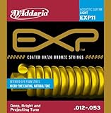 D'Addario EXP11 Coated 80/20 Bronze Light アコースティックギター弦 抜群の耐久性を誇るナチュラルサウンドのコーティング弦。従来のコーティングよりもさらに50%も薄いコーティングを施したワウンド弦を6角芯線にワウンドしており、80/20ブロンズ弦特有の深みのある、抜けの良いブライトでダイナミックなサウンドを保ちながらも、驚異的な弦寿命を実現しました。 ゲージ:Light 1st:PL012 2nd:PL016 3rd:EXPBW024 4th:EXPBW032 5th:EXPBW042 6th:EXPBW053